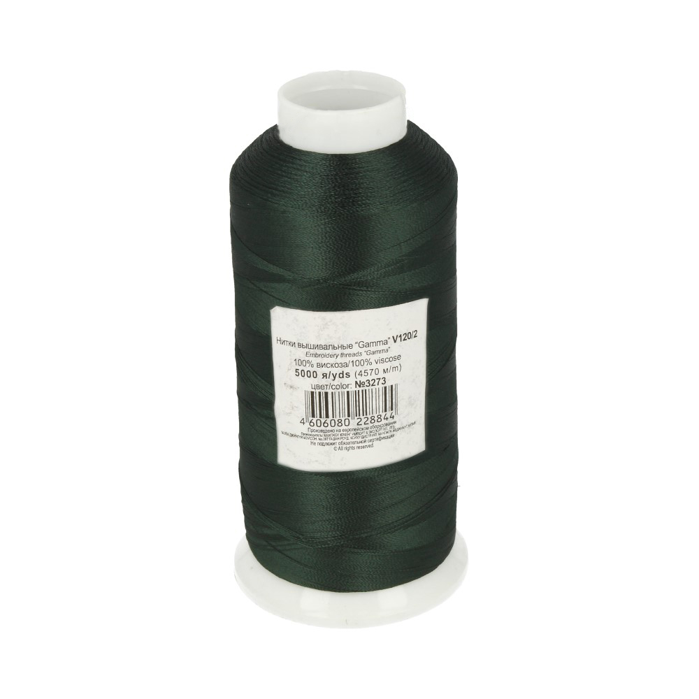 Нитки для вышивания "Gamma" V120/2 100% вискоза 5000 я 4570 м №3273 т.зеленый