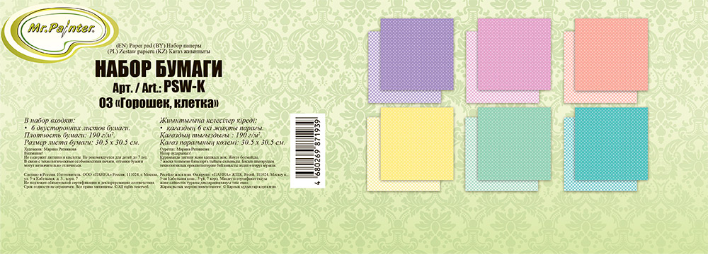 Бумага для скрапбукинга Mr.Painter PSW-K Набор бумаги 190 г/кв.м 30.5 x 30.5 см 6 л. 03 Горошек, клетка. В интернет-магазине Канцлер Арт широкий ассортимент товаров, быстрая доставка и регулярные скидки.