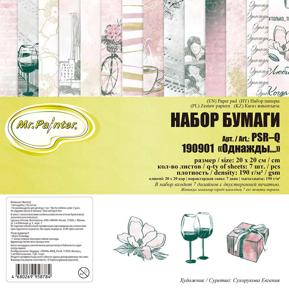 Бумага для скрапбукинга "Mr.Painter" PSR-Q Набор бумаги для скрапбукинга 190 г/кв.м 20 x 20 см 7 л. 190901 "Однажды…"