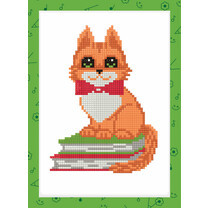 Кристальная (алмазная) мозаика "ФРЕЯ" ALVS-030 мини-картина "Котик на книжках" 14 х 19.5 см