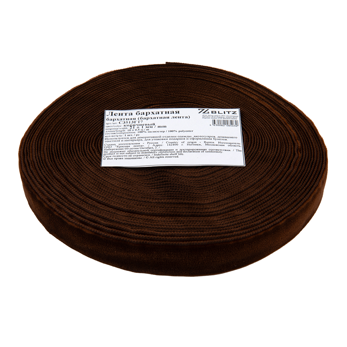 "BLITZ" бархатная лента С3513Г17 21 мм 10 м ± 0.5 м коричневый