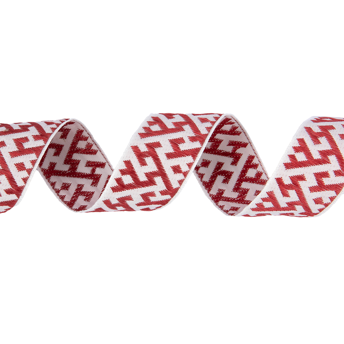 Лента жаккардовая 32 мм "Gamma" С3774 25 м отделочная "Орнамент для северных народов" рис 9302 белый-бордовый