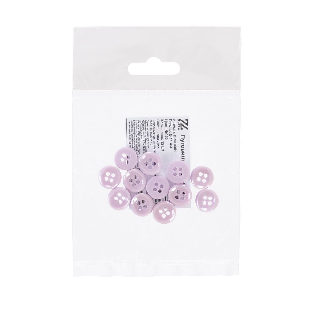 Пуговица рубашечная/блузочная BLITZ Пуговицы блузочные DRN 0051 18 ( 11 мм) ( 12 шт) №165 сиреневый. В интернет-магазине Канцлер Арт широкий ассортимент товаров, быстрая доставка и регулярные скидки.