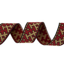 Лента жаккардовая 24 мм "Gamma" С3772 25 м Лента отделочная "Орнамент для северных народов" рис 9701 черный/красный/бежевый