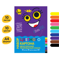 "Лео" "Играй" Картон цветной тонированный в массе LPCB-05 220 г/м2 A4 21 х 29.7 см 10 л. 10 цв.