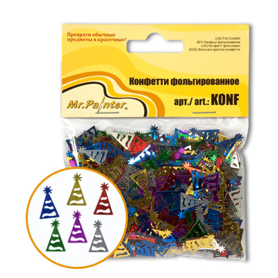 "Mr.Painter" KONF-001 Конфетти фольгированное 25 г СК/Распродажа 31 "Праздничный колпак"