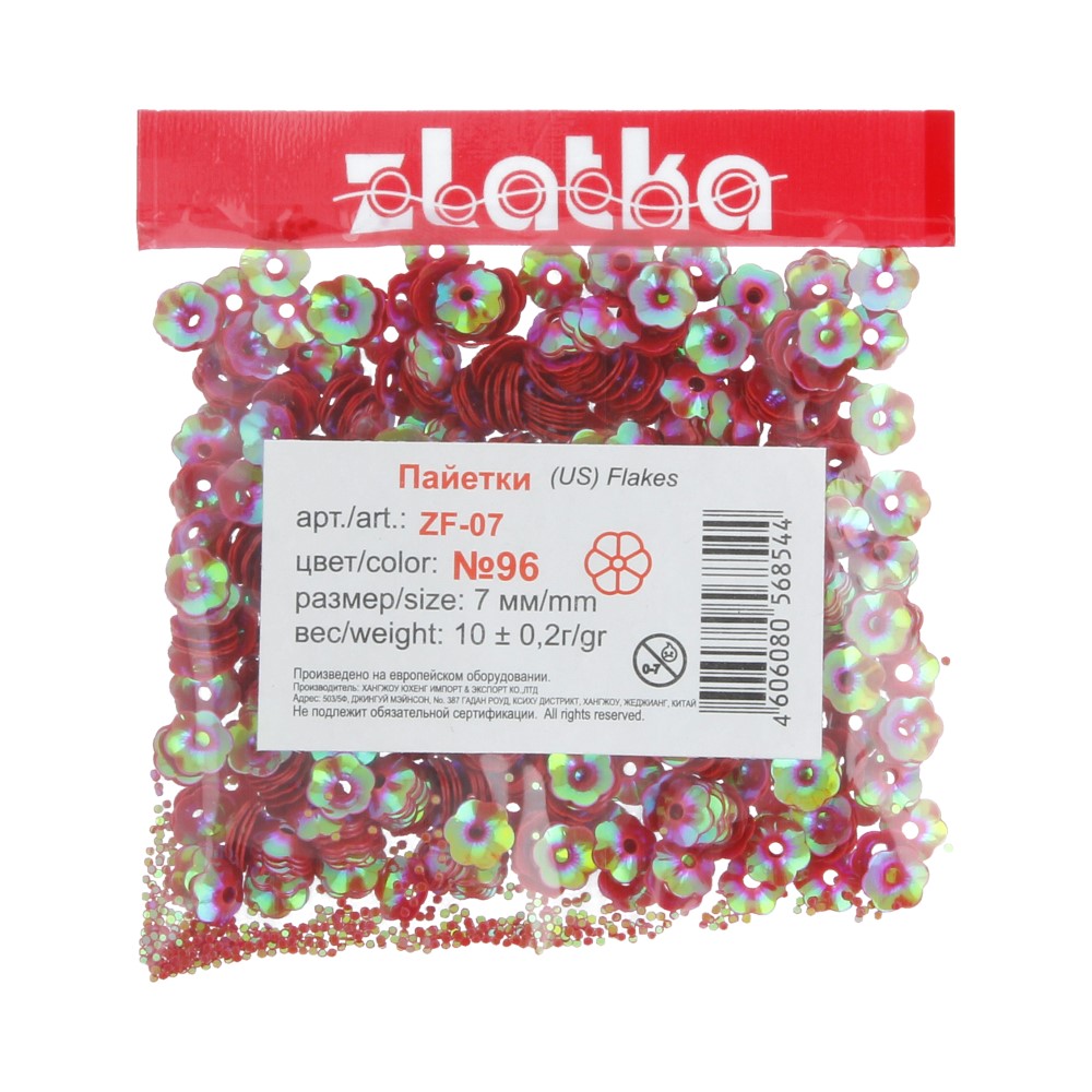 Пайетки Zlatka россыпью ZF-07 7 мм 10 г №096 красный. В интернет-магазине Канцлер Арт широкий ассортимент товаров, быстрая доставка и регулярные скидки.